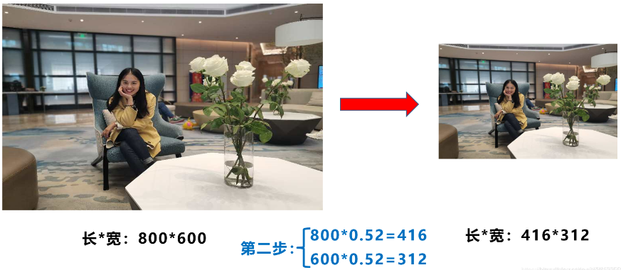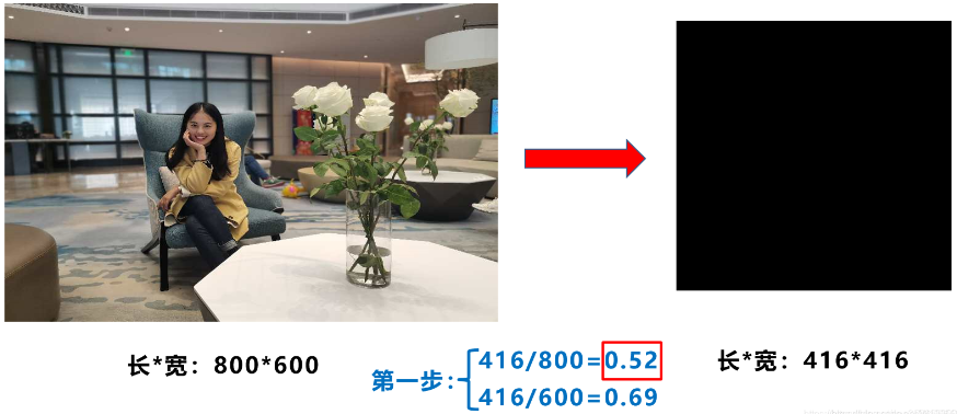 - 2)将每张图片中 wh 的最大值等比例缩放到指定大小 img_size,较小边也相应缩放