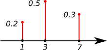 - 一个概率质量函数的图像。函数的所有值必须非负,且总和为 1