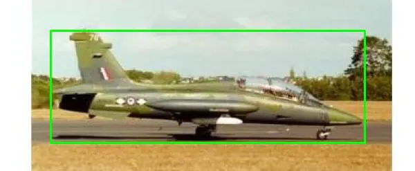 BASE_PATH = "dataset" IMAGES_PATH = os.path.sep.join([BASE_PATH, "images"]) ANNOTS_PATH = os.path.sep.join([BASE_PATH, "airplanes.csv"]) data = [] targets = [] for row in rows: (filename, startX, startY, endX, endY) = row imagePath = os.path.sep.join([IMAGES_PATH, filename]) image = cv2.imread(imagePath) # 模型监督信息为:边界框的真实左上、右下的坐标点,按图片大小归一化 (h, w) = image.shape[:2] startX = float(startX) / w startY = float(startY) / h endX = float(endX) / w endY = float(endY) / h image = load_img(imagePath, target_size=(224, 224)) image = img_to_array(image) data.append(image) targets.append((startX, startY, endX, endY)) BASE_PATH = "dataset" IMAGES_PATH = os.path.sep.join([BASE_PATH, "images"]) ANNOTS_PATH = os.path.sep.join([BASE_PATH, "airplanes.csv"]) data = [] targets = [] for row in rows: (filename, startX, startY, endX, endY) = row imagePath = os.path.sep.join([IMAGES_PATH, filename]) image = cv2.imread(imagePath) # 模型监督信息为:边界框的真实左上、右下的坐标点,按图片大小归一化 (h, w) = image.shape[:2] startX = float(startX) / w startY = float(startY) / h endX = float(endX) / w endY = float(endY) / h image = load_img(imagePath, target_size=(224, 224)) image = img_to_array(image) data.append(image) targets.append((startX, startY, endX, endY))模型输出