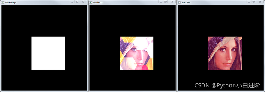 imgAddMask1 = cv2.add(img1, img2, mask=Mask) # 带有掩模 mask 的加法