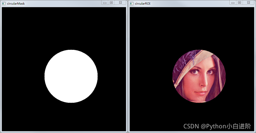 imgAddMask1 = cv2.add(img1, np.zeros(np.shape(img1), dtype=np.uint8), mask=Mask1) # 提取圆形 ROI