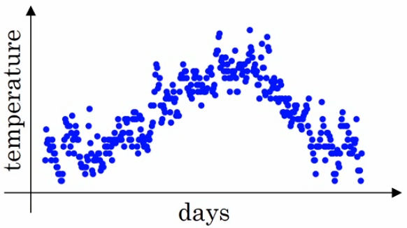 - 下图是一个天与温度的变化关系,其中横轴表示的是一年中的第几天,纵轴表示的是该天的温度,1 月份和 12 月份的温度相对于年中 (6 月、7 月) 的温度要低一些
