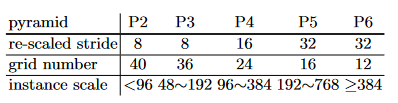 - 大小:为了区分不同对象大小的实例,我们采用特征金字塔网络(FPN),将不同大小的对象分配给不同级别的特征映射,作为对象大小类