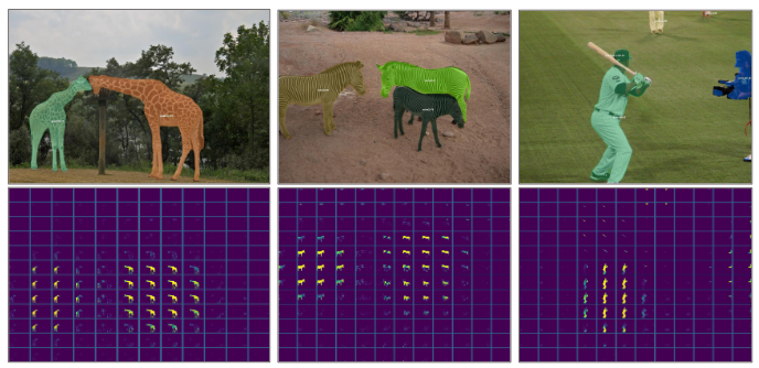 - 类别预测和对应的 mask 生成:通过它们的参考网格单元自然地关联起来,在此基础上,我们可以直接为每个网格生成最终的实例分割结果。原始实例分割结果是通过收集所有网格结果生成的。最后,利用非最大值抑制(NMS)得到最终的实例分割结果。不需要其他后处理操作
