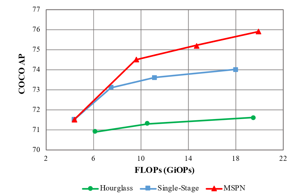 - MSPN 认为 Hourglass 的重复降采样 + 不变的通道数导致信息损失,它希望是降采样时,通过更多的通道数将信息补充回来,所以借鉴 CPN 修改了 Hourglass 的所有 satge