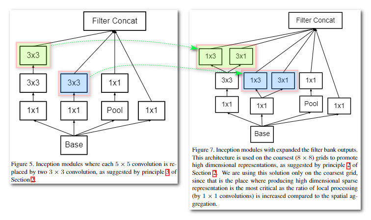 - 大卷积⇒多个不对称卷积: 将大卷积核分解为非对称卷积核,空间可分离卷积 (Spatial Separable Convolutions)